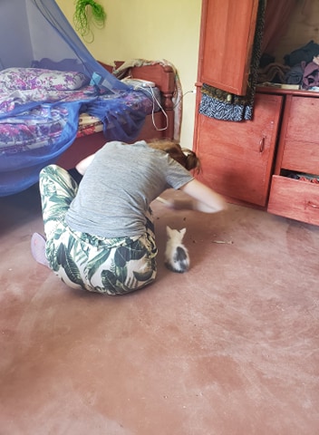 Sasha helped do one of the students hair that was just long enough to braid. Hers were quite loose compared to the others, but when they tried to braid Sasha’s hair they said it was too silky and only managed after a lot of practice. One girl- Sandra who has been almost kicked out of the classroom multiple times (if she doesn’t run away first) said her hair was “Gaga”. When Sasha asked the meaning, Sandra ran away. We do quite like Sandra, if she sees someone shout “Azungu!” at us, she says “no Azungu! Sasha and Ryan!” which is far more polite. Turns out Gaga means dirty- they found Sasha’s dandruff!