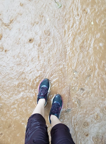 There are street lamps but they are not turned on, so it was dark. We did not want to use our phones as lights, as that could make us targets. Sasha tripped on a sharp rock, causing a large cut on her foot. We march on, wanting to get there as soon as possible and not be caught lingering outside.