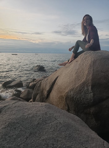 On the wall, there is a sign saying that if you can row a dug out canoe around a buoy and back you can get a free night. If your legs are out, you get a free drink. We asked the manager of Mango if anyone had managed it. He explained there was a trick to it, but wouldn’t tell us what it was. We asked Andrew who said the trick was that it was impossible, the canoe was a dud. A few of the teachers decided that they could do it. While everyone had fun, it clearly was impossible and everyone tipped over very quickly.